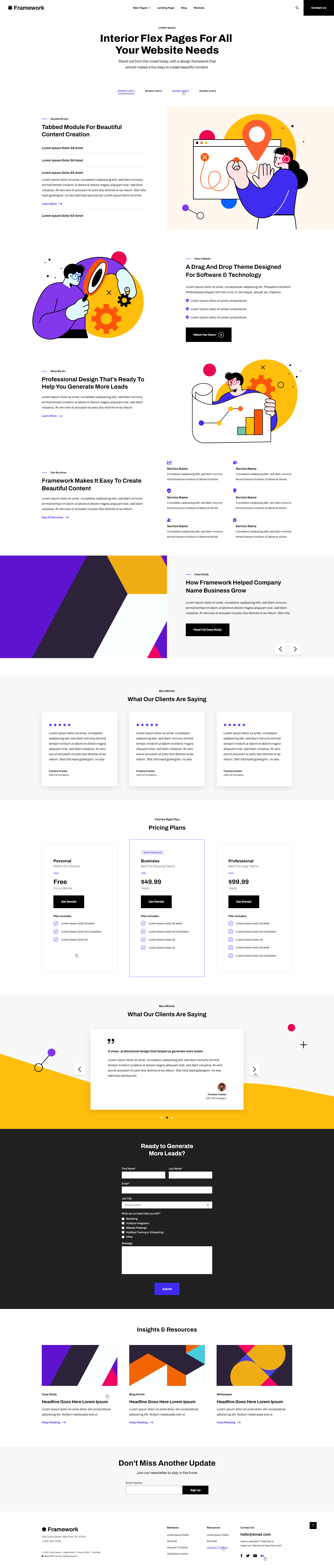 When selling products or services, having transparent, predictable pricing is essential. Framework+‘s pricing page template and modules help you provide the most pertinent information in a stunning, eye-catching design.