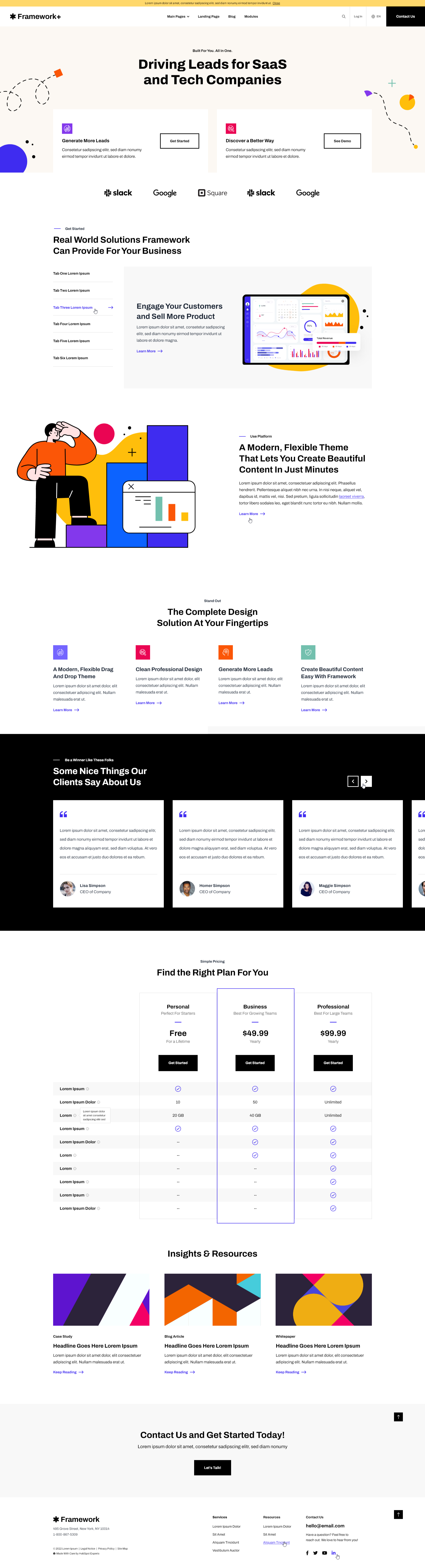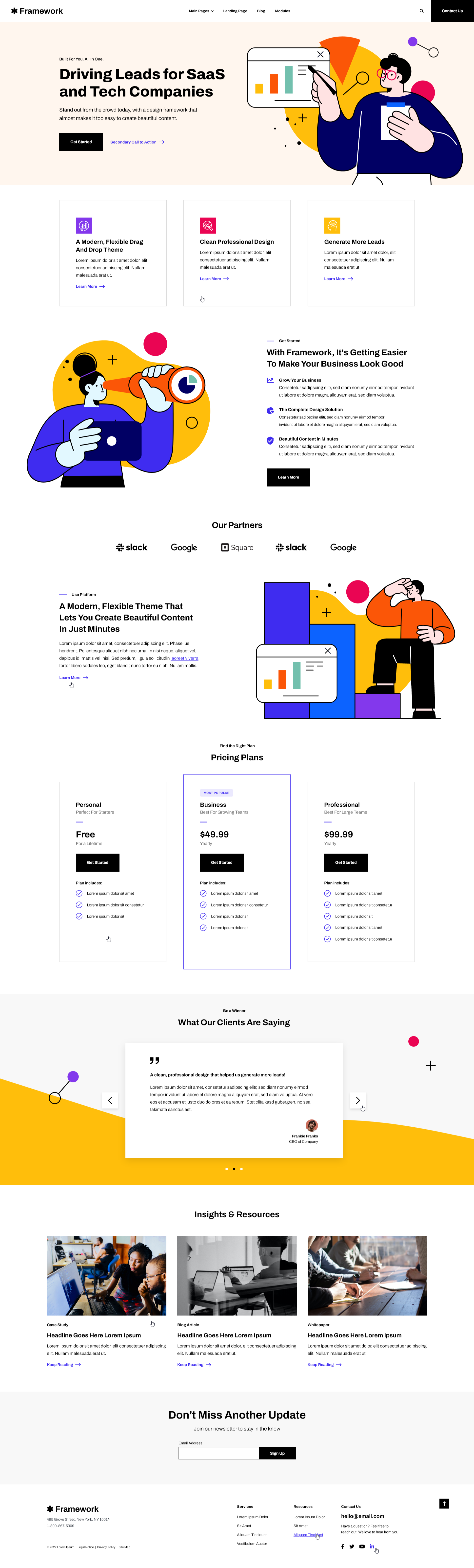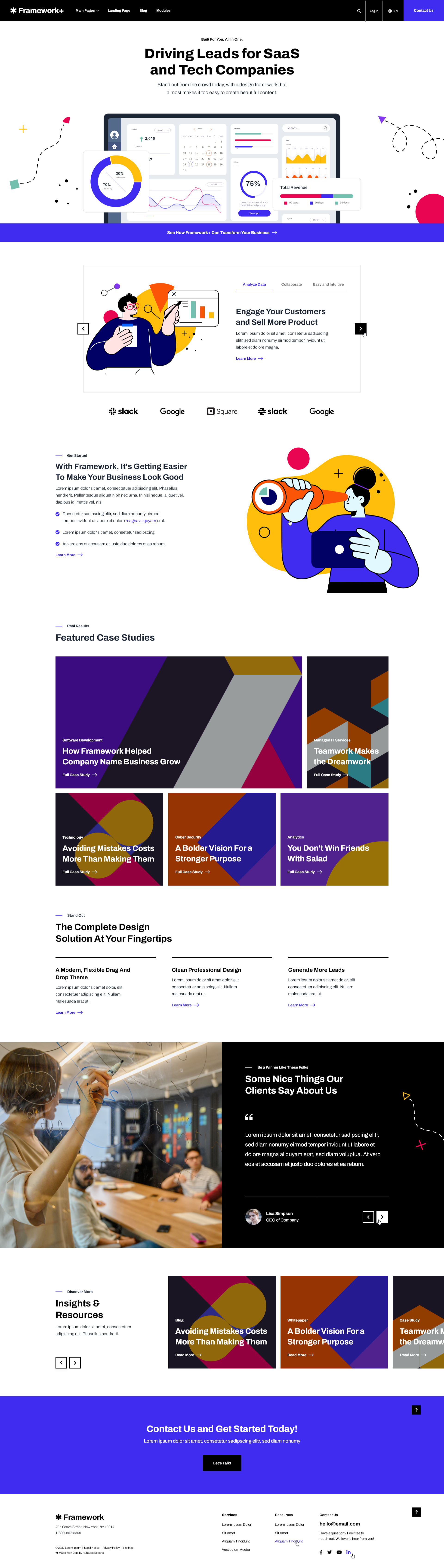 With its simple-to-use modules, saved sections, and templates that require no knowledge of code, anyone in your organization can use it to build great-looking webpages in a matter of minutes. Framework+ has everything you need to create a marketing website for your SaaS or tech company.